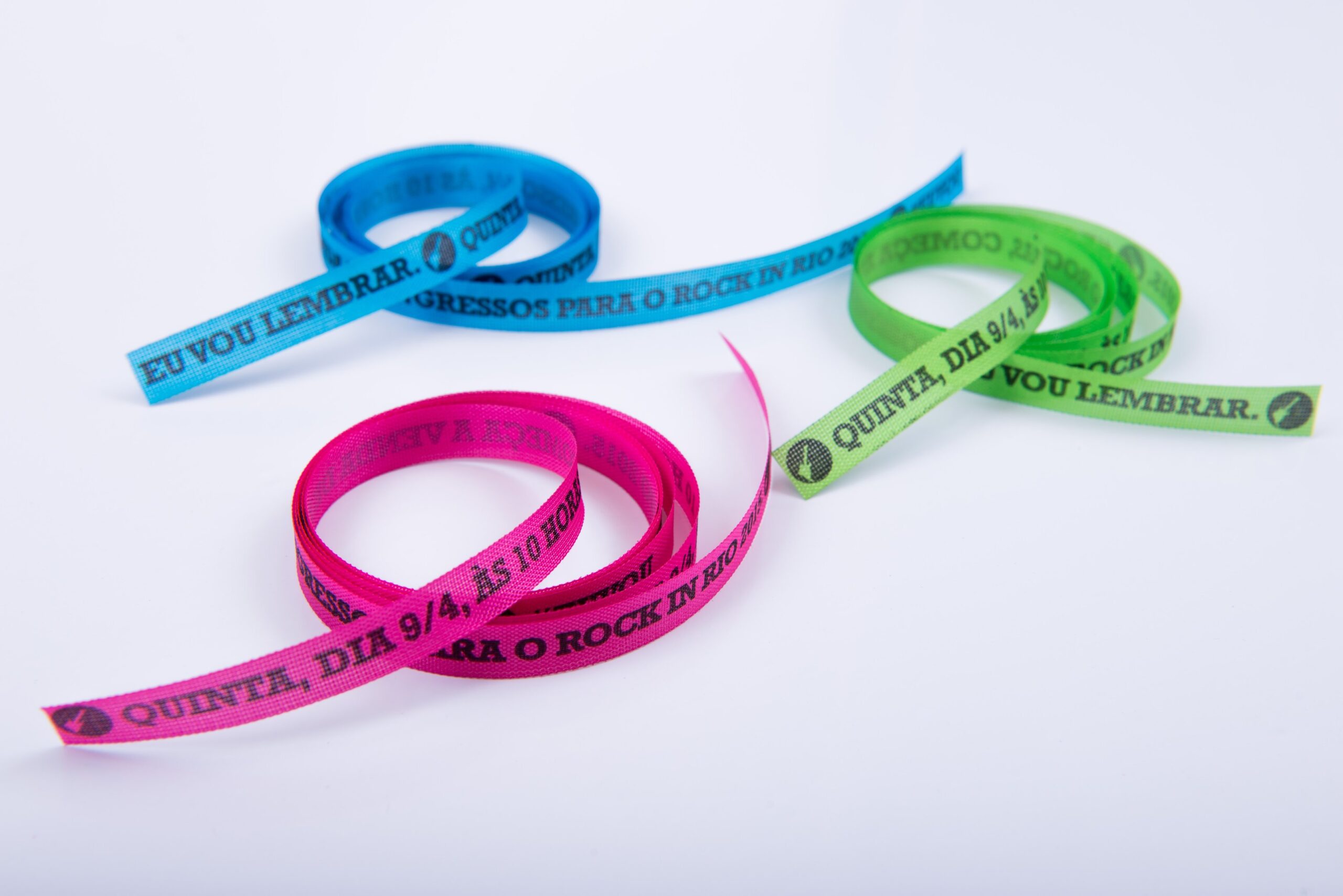 Uma Variedade de cordões, como de crachá, para canecas e pulseiras de eventos. Trabalhamos para garantir que cada item atenda aos mais altos padrões de qualidade para representar suas marcas da melhor maneira possível.